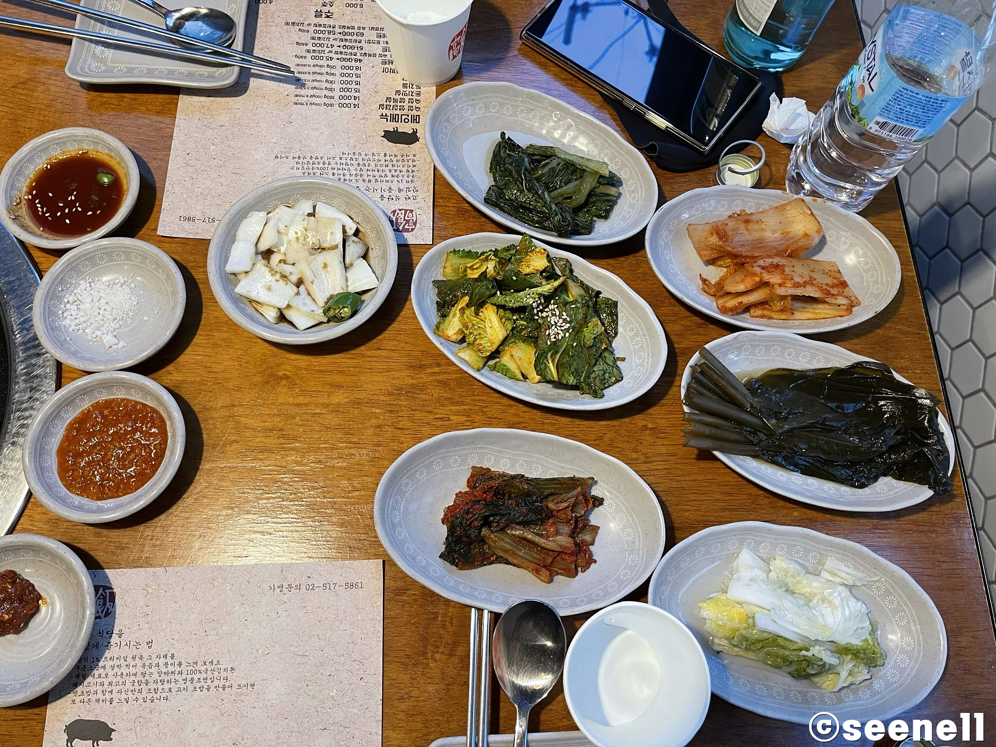 여기 오는 중요한 이유는 다양한 밑반찬과 숙성된 한돈 돼지고기 때문이다.