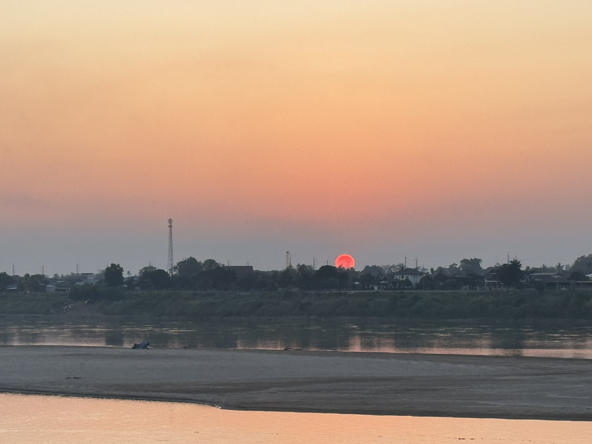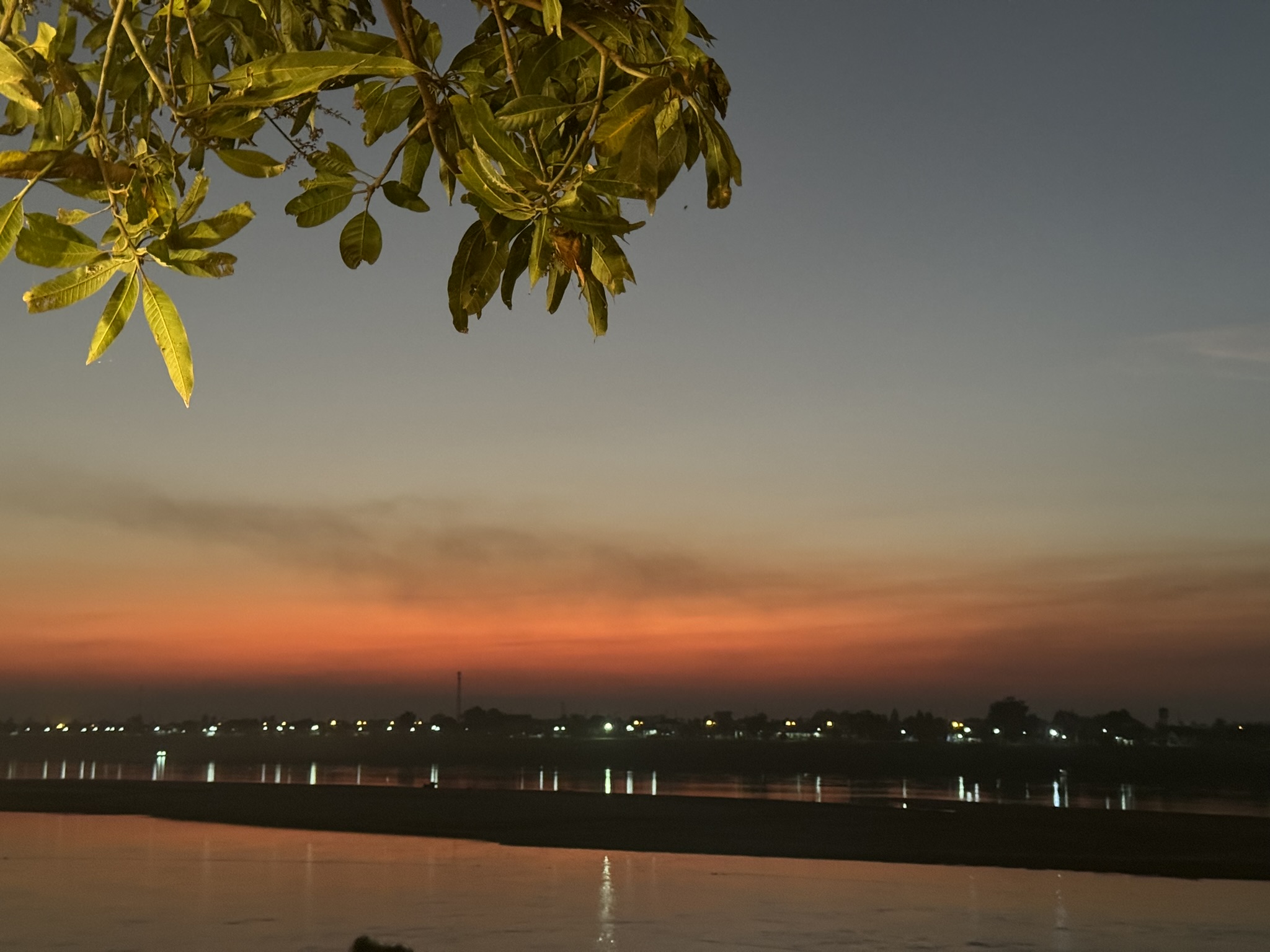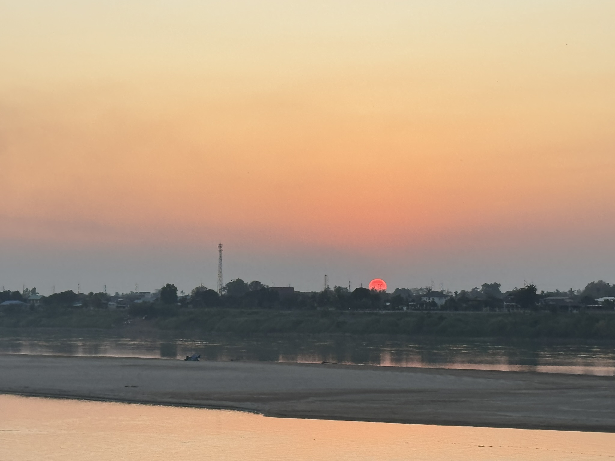 땅(강 건너편은 태국이다)으로 떨어지는 해를 본다는게