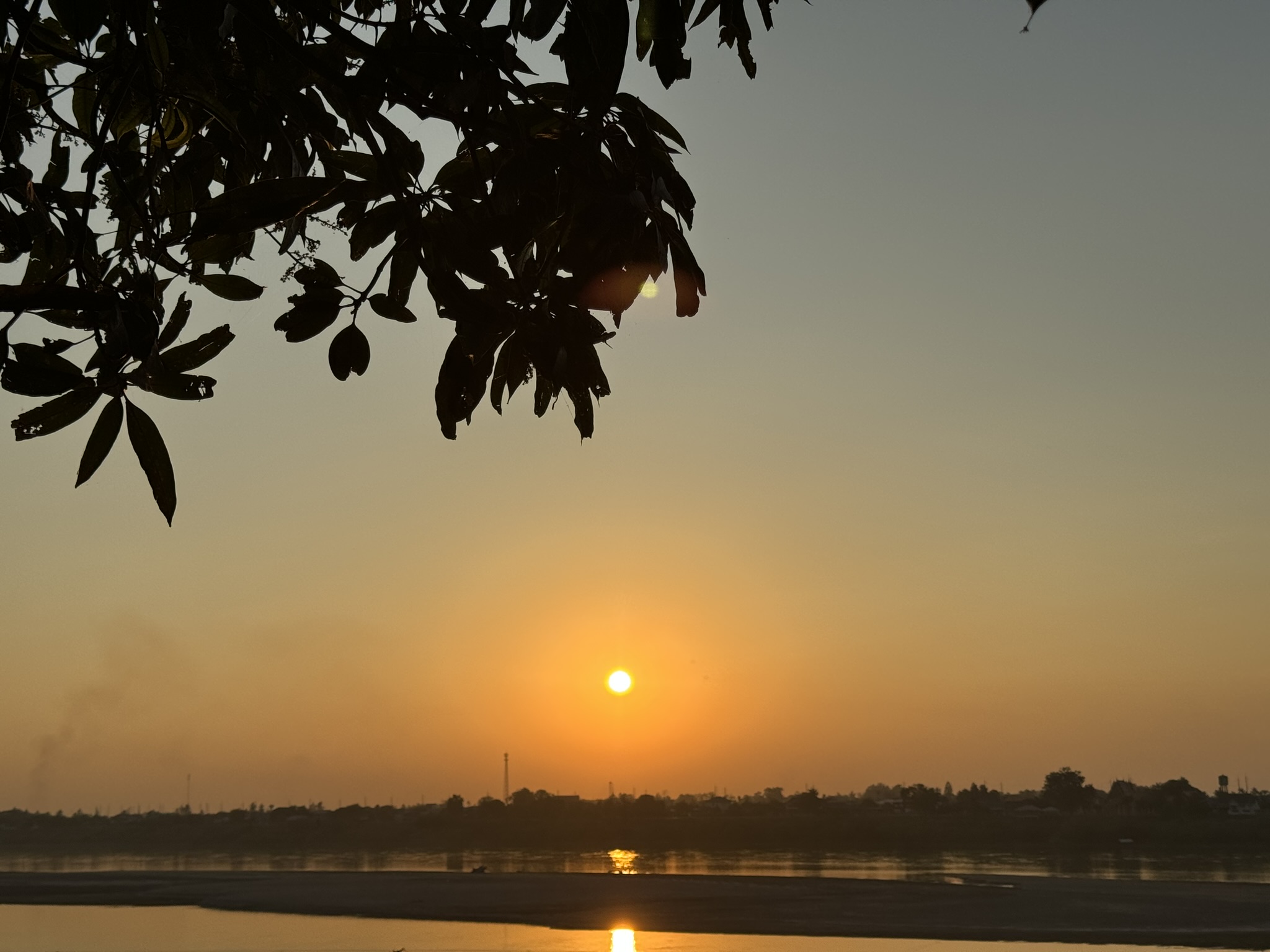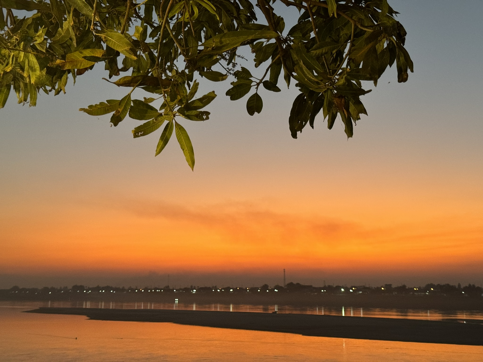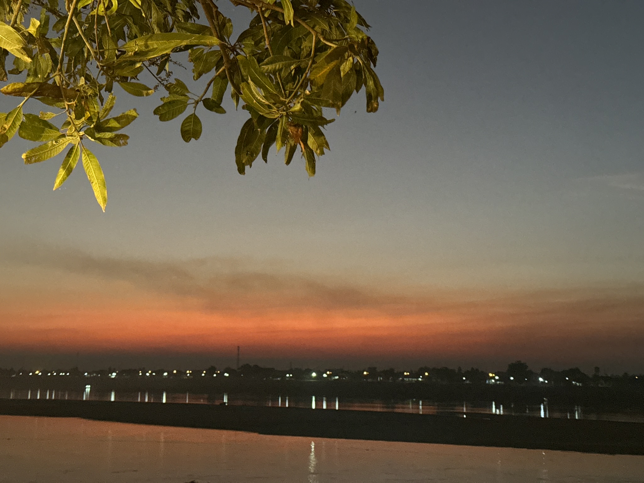 땅(강 건너편은 태국이다)으로 떨어지는 해를 본다는게